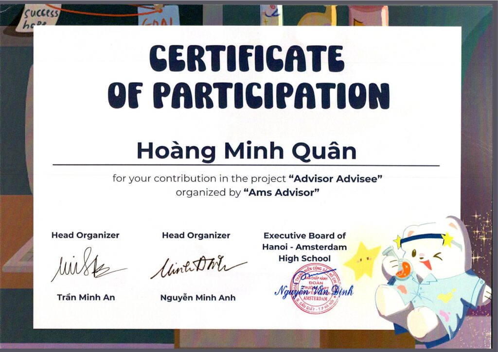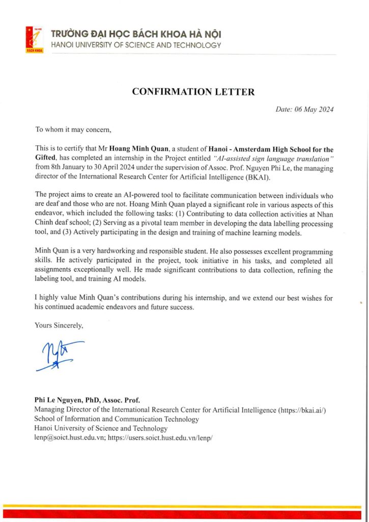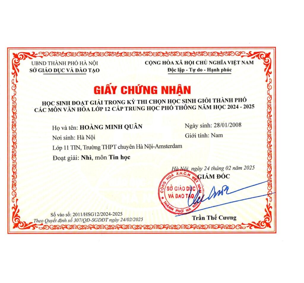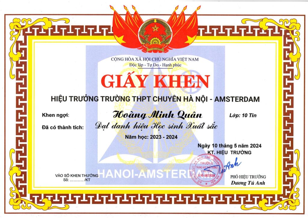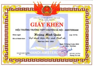 Top-ranked entrant to Hanoi–Amsterdam High School for the Gifted