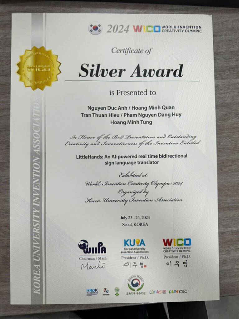 Awarded the Silver Medal at the World Invention Creativity Olympic (WICO 2024)